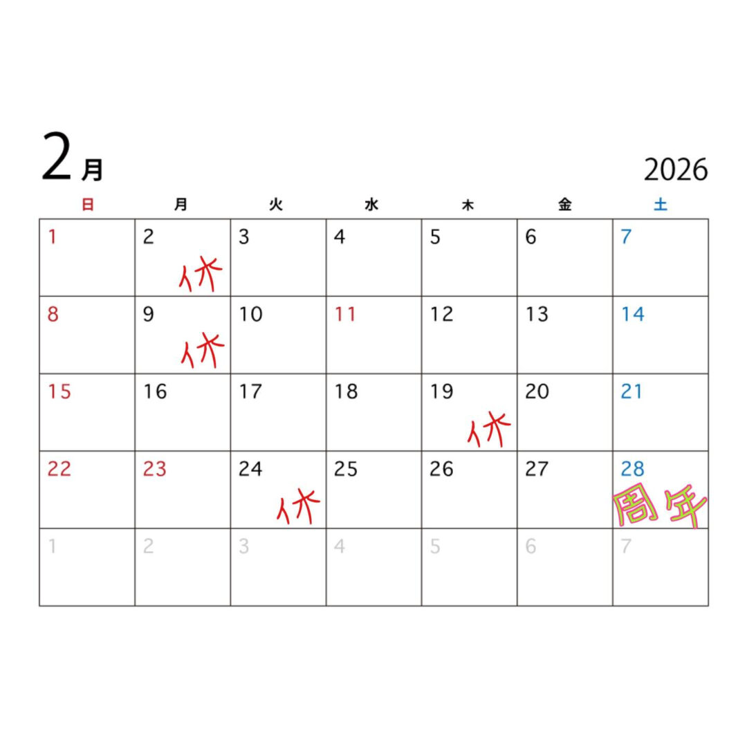 2月のお休みです 2月のお休みです 28日(土)は㊗️1周年です 何をするかはまだ決まってないですが、28日はべごべごに顔出していただけたら嬉しいです 宜しくお願いします スキル 投稿日 2026年3月27日 ← 『数の子チーーーズっ』 『ミノ刺し』 →